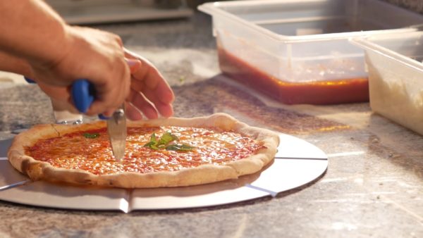 Le lievi scanalature facilitano e velocizzano il taglio a spicchi della pizza.